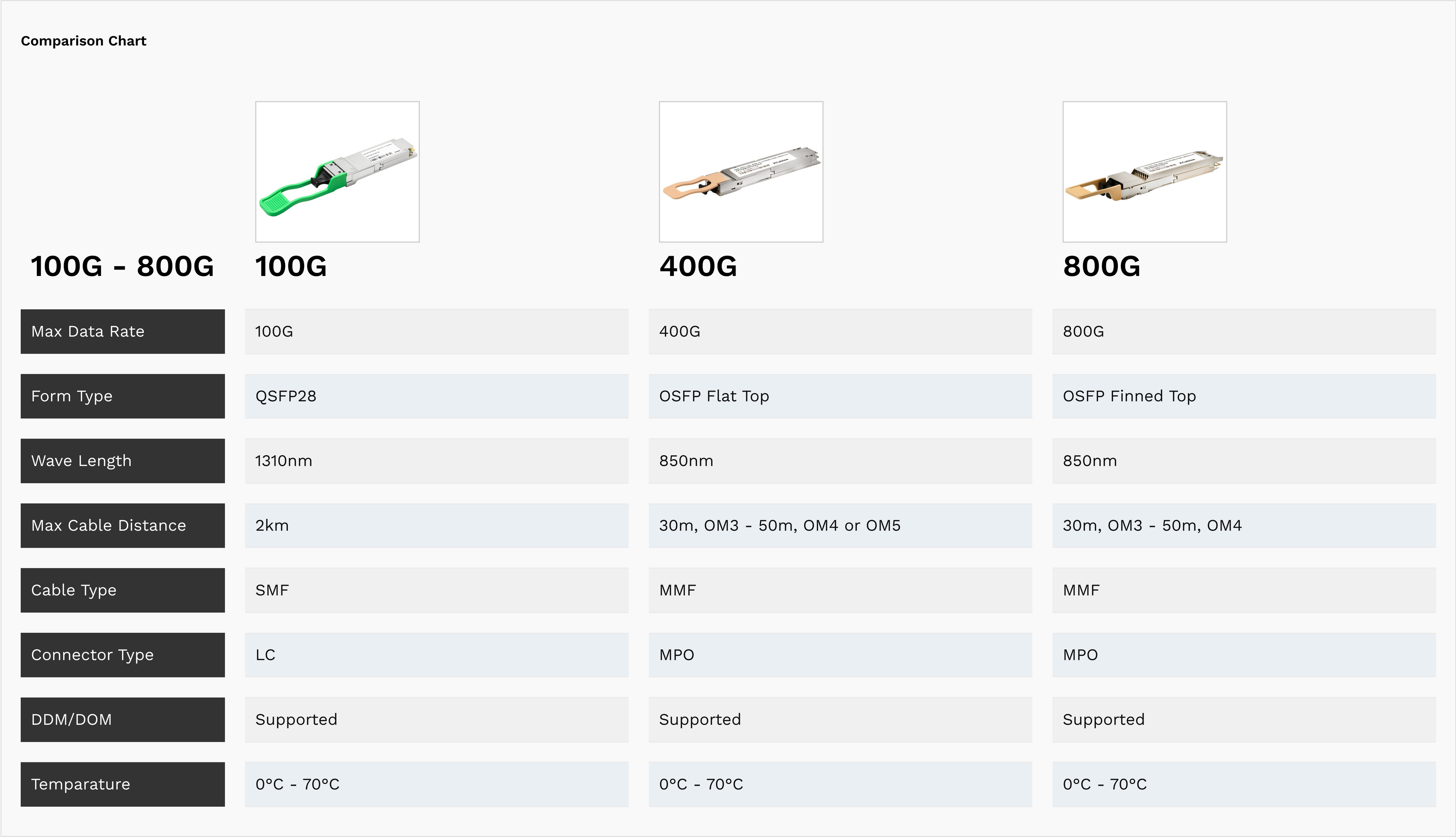 • High-speed 400GBase-SR8 QSFP-DD with 100m reach.