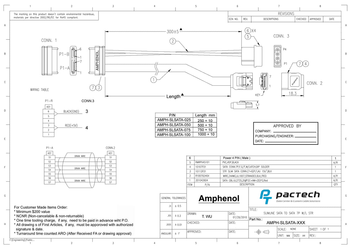 • 標準線長:250mm、500mm、750mm、1000mm