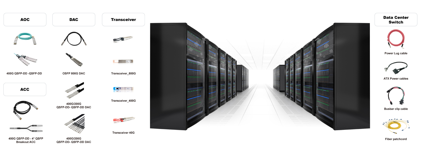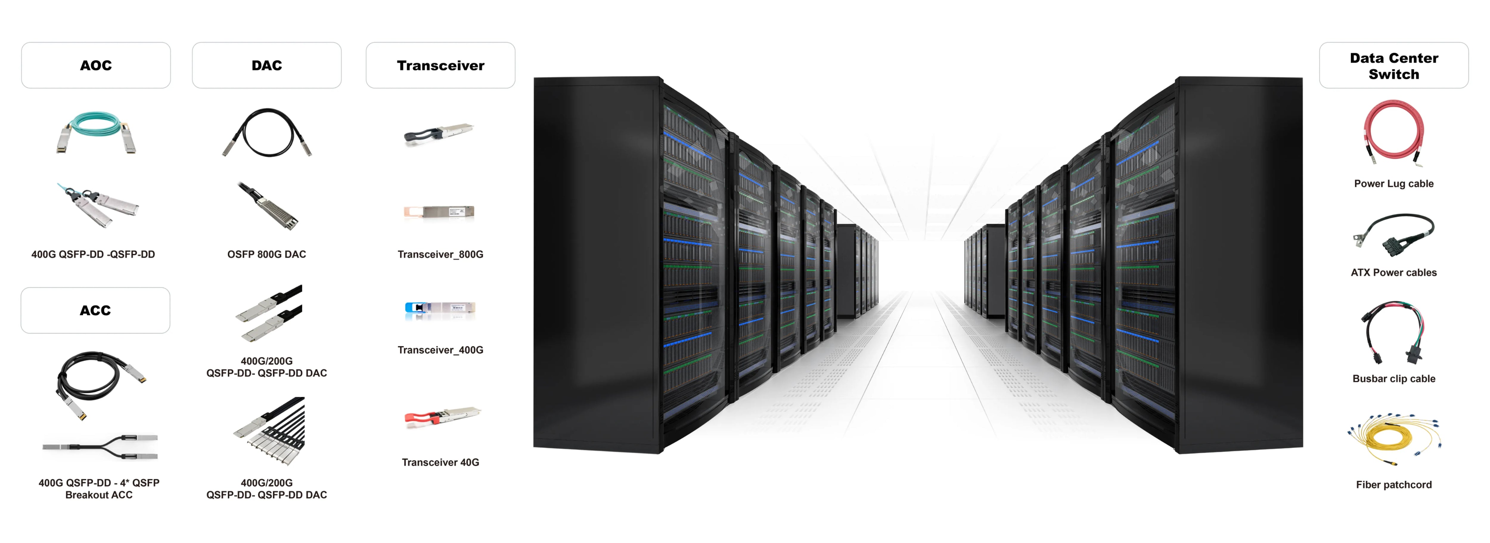 Reliable, high-speed cabling for data centers. From 10G to 800G, our transceivers, AOCs, DACs, fiber patchcords, and power cables deliver maximum network performance. Fast delivery to meet your needs.