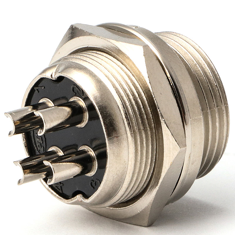 Industrial Circular-16 Series, 4 Pin, Receptacle, Male Contact, Straight, Solder, Screw Thread Connector
